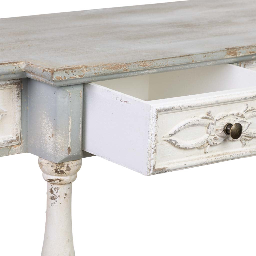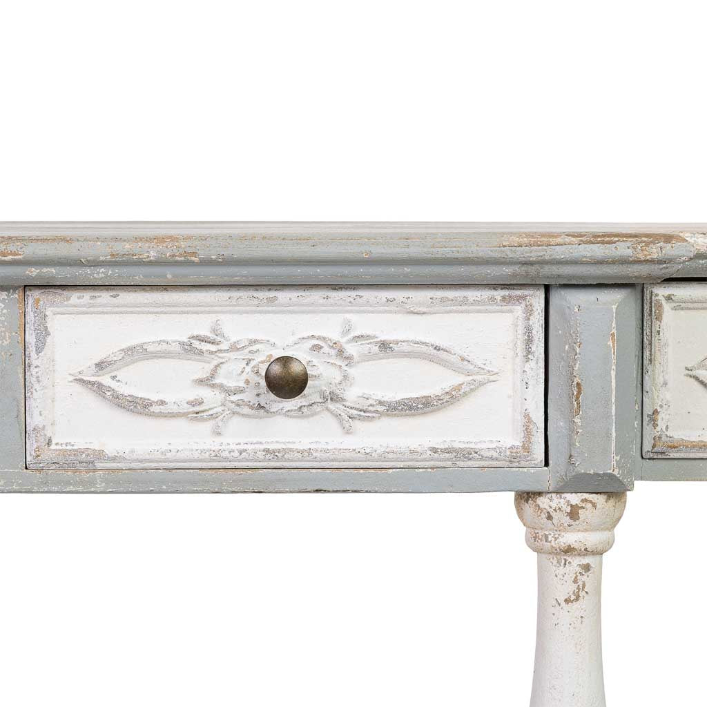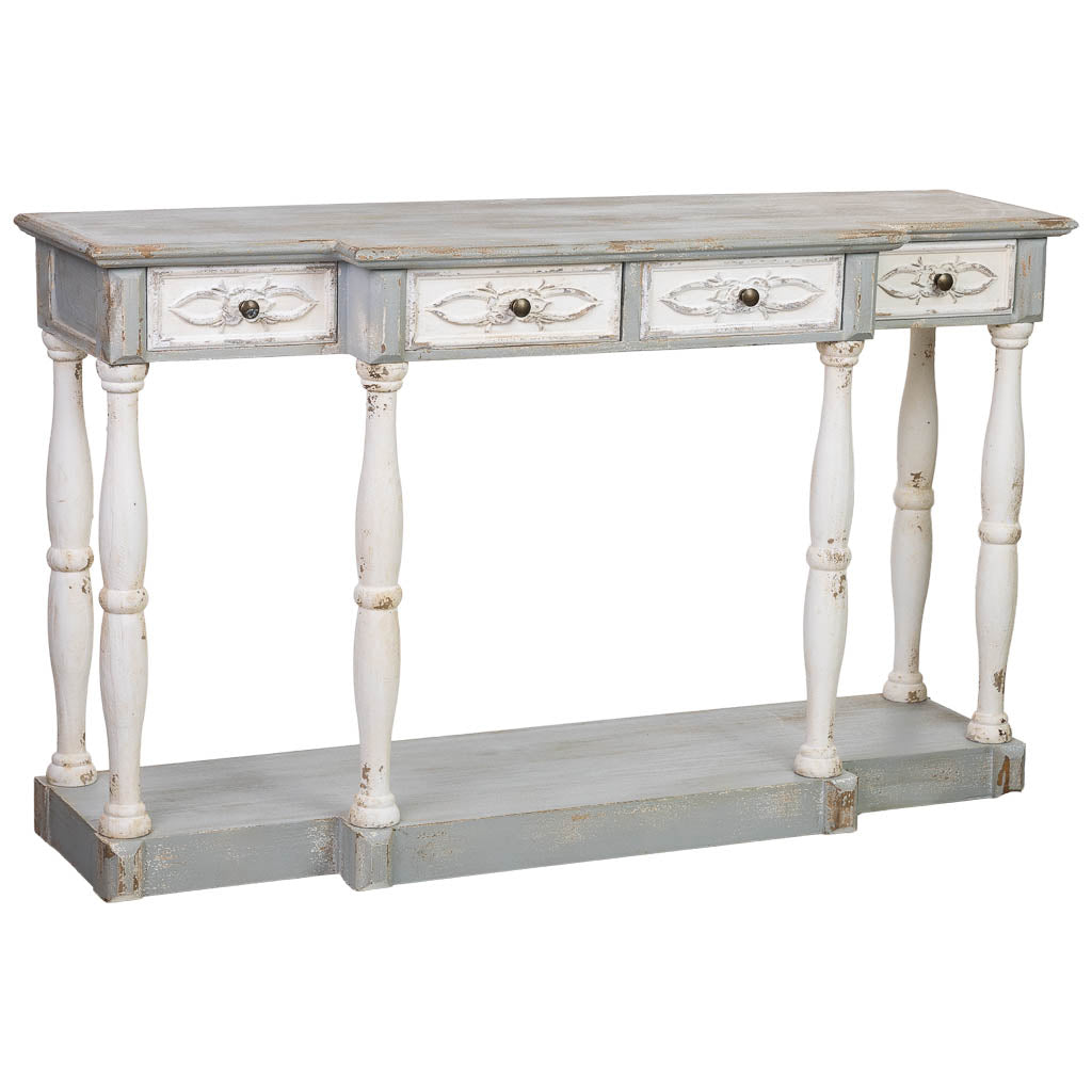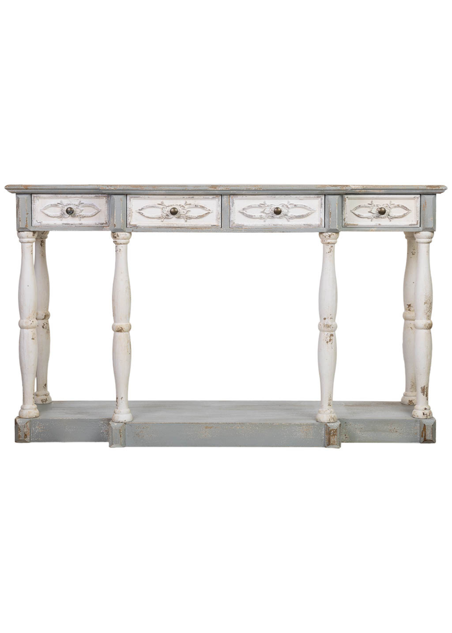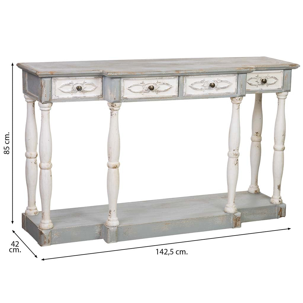 Recibidor de madera con un acabado envejecido de cuatro cajones.