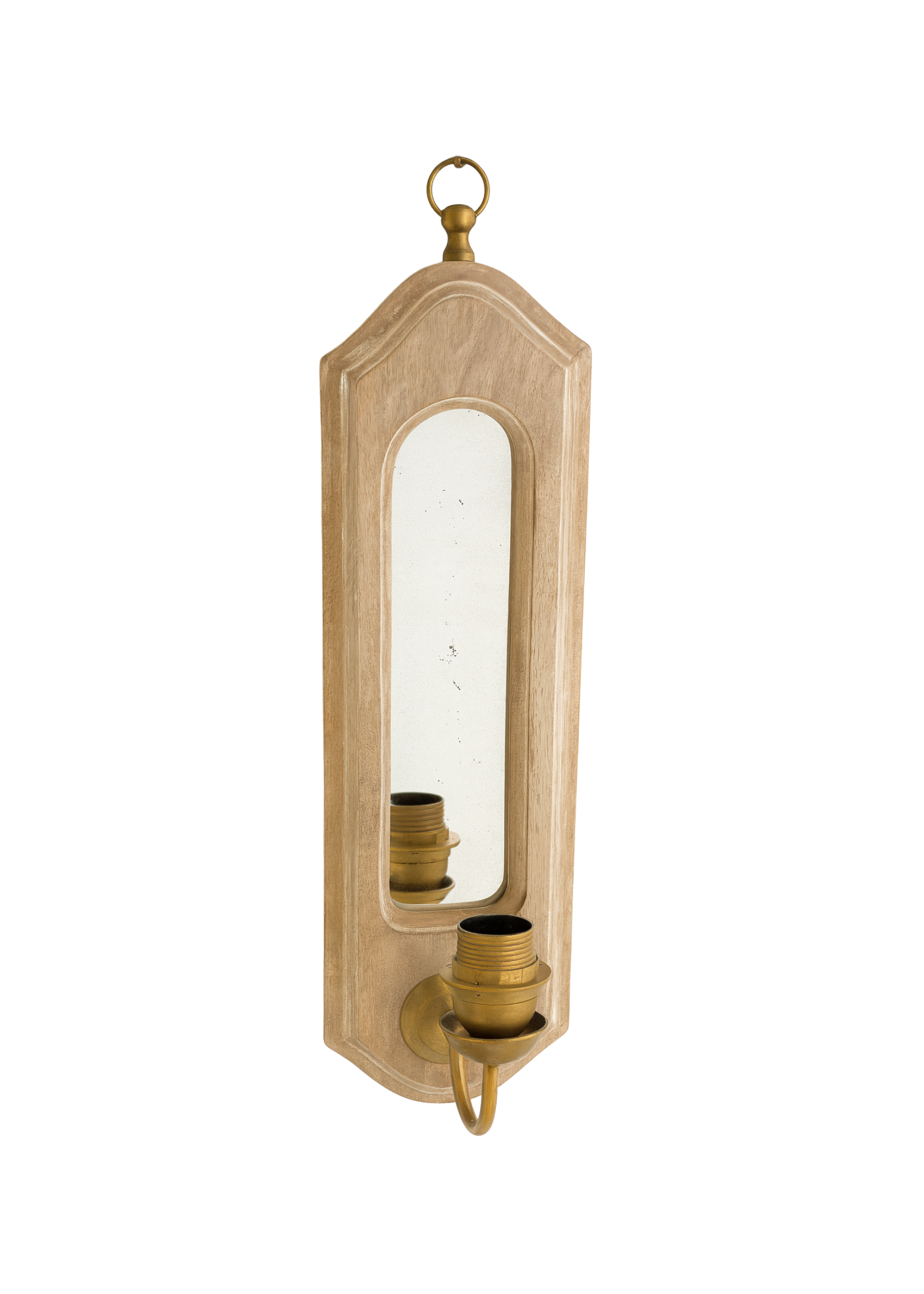 Aplique de hierro dorado, ilumina a la perfección sin ocupar demasiado espacio. Perfecto para resaltar la decoración y crear un ambiente acogedor.