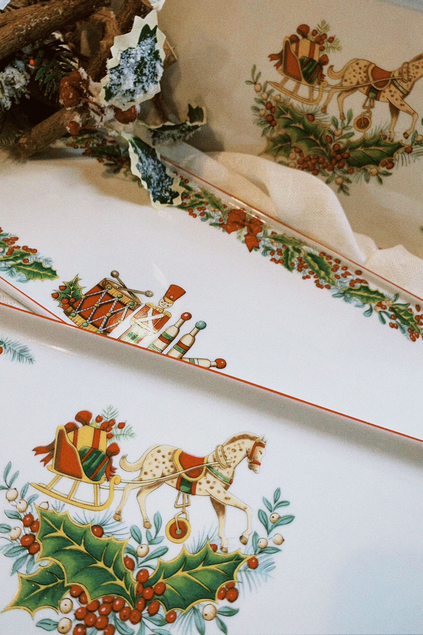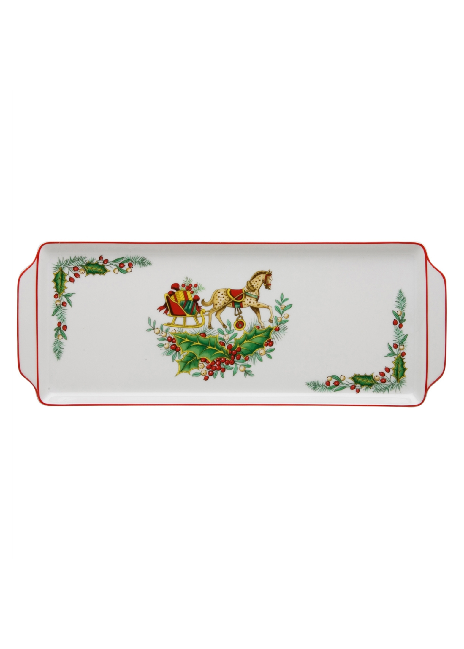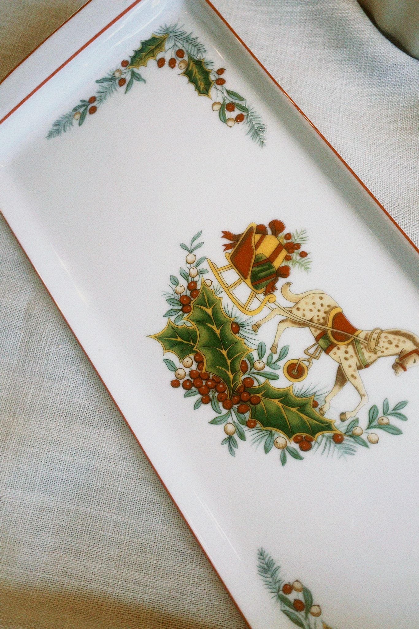 Bandeja de Navidad de Vista Alegre. Apto para microondas. Para lavavajillas, recomendamos ciclos cortos a baja temperatura. Evitar lavar con frecuencia.