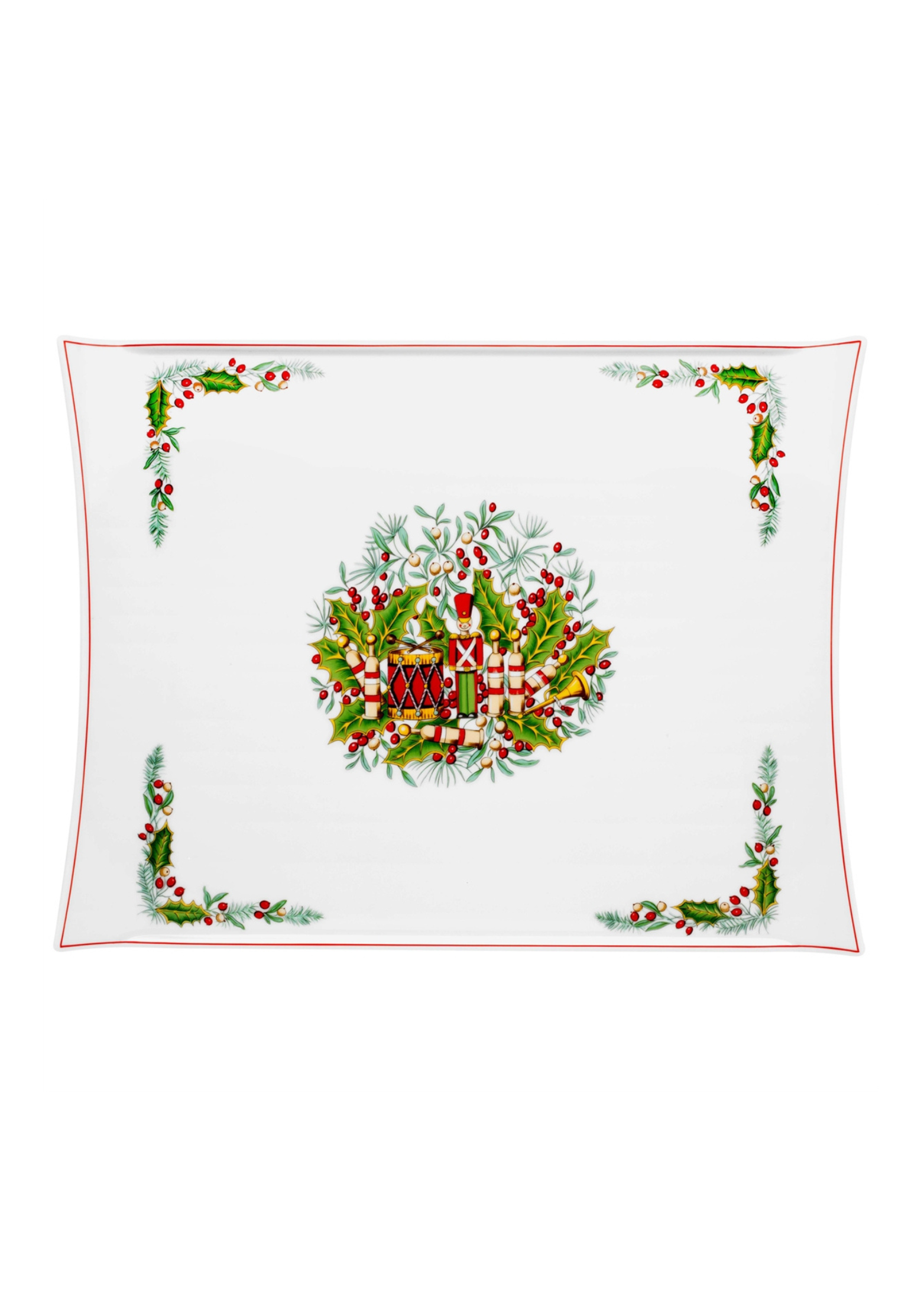 Bandeja de Navidad de Vista Alegre. Apto para microondas. Para lavavajillas, recomendamos ciclos cortos a baja temperatura. Evitar lavar con frecuencia.