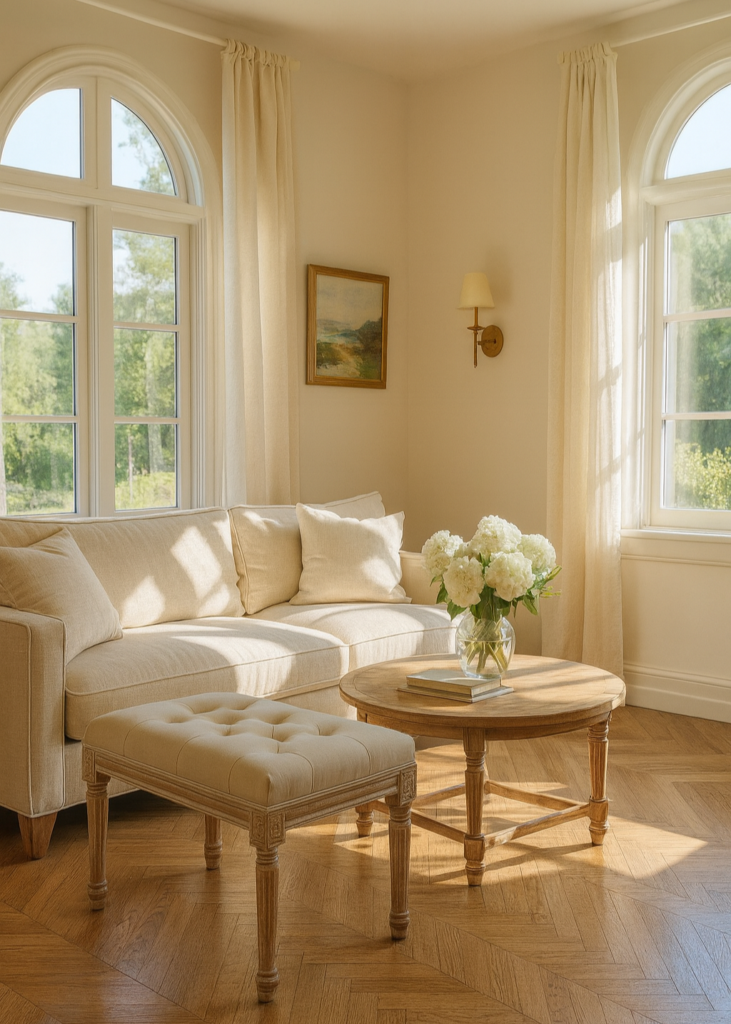 Materiales: Madera de caucho. Tejido: 70% Poliéster, 30% algodón