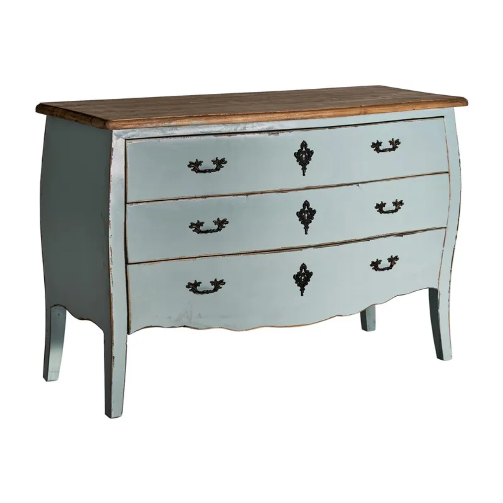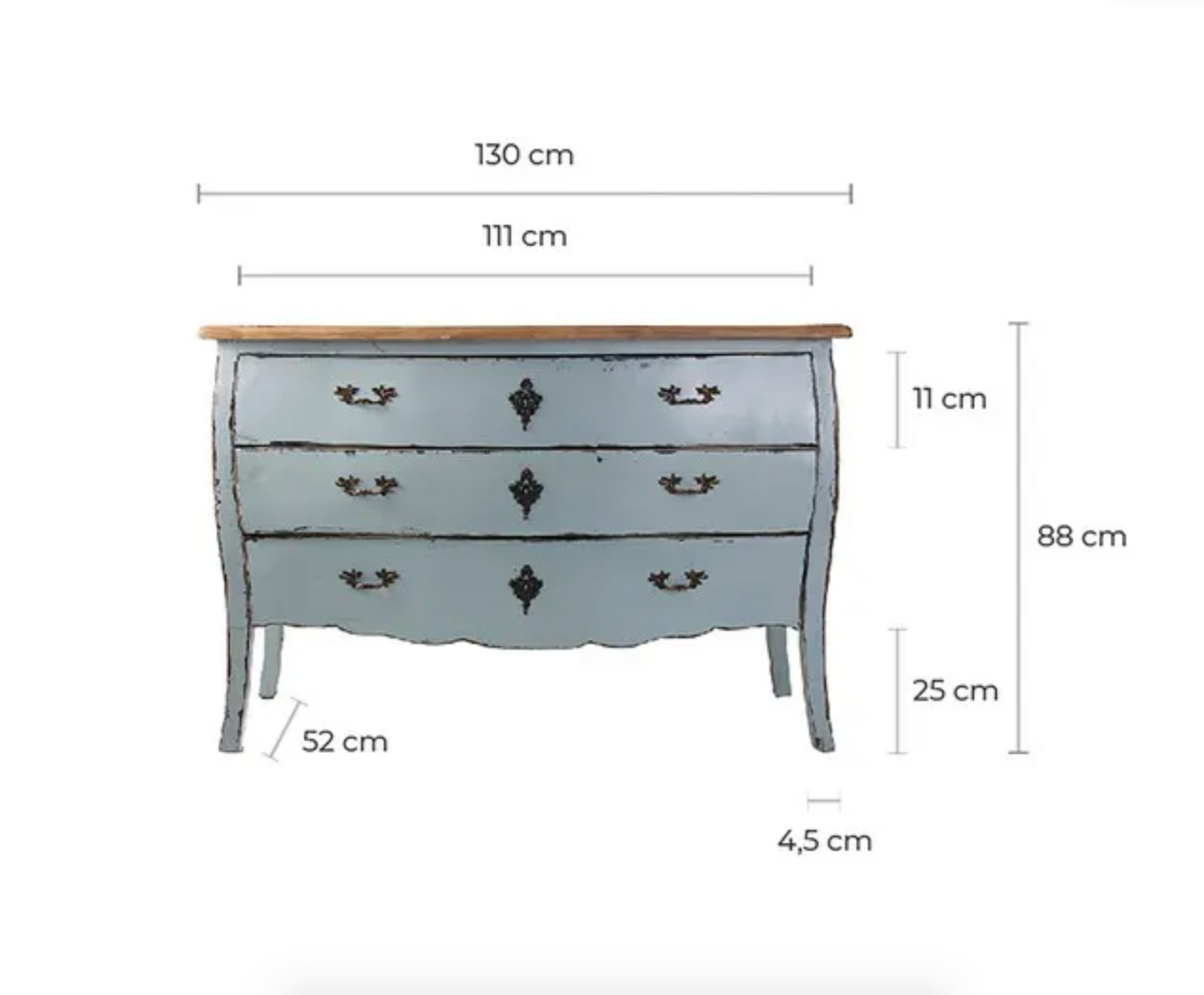 Fabricado en madera de olmo en color azul/natural envejecido, de estilo colonial. Incorpora un diseño único y una estructura resistente que garantiza su durabilidad. Además, su color azul y natural envejecido aporta un toque elegante a cualquier habitación de tu hogar. Se pueden encontrar muchas opciones para lograr un aspecto tradicional o contemporáneo con esta cómoda. Sin duda, una excelente opción para aquellos que buscan calidad y estilo en un solo producto.