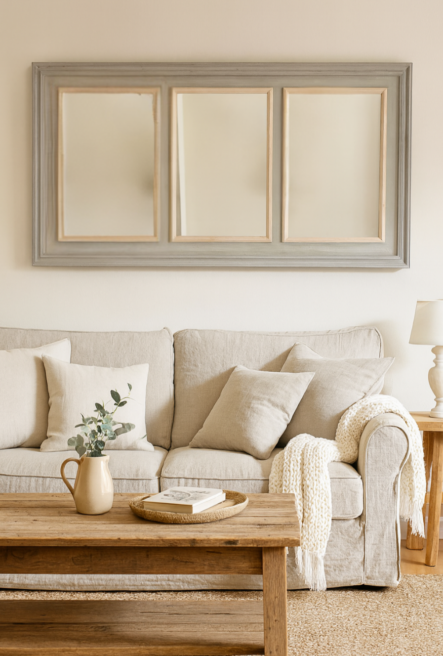 Espejo de madera gris.