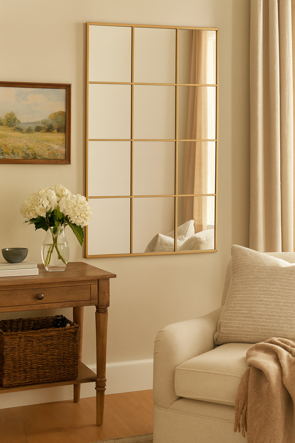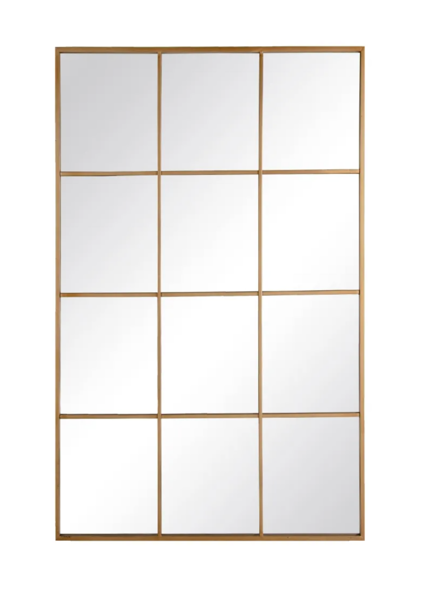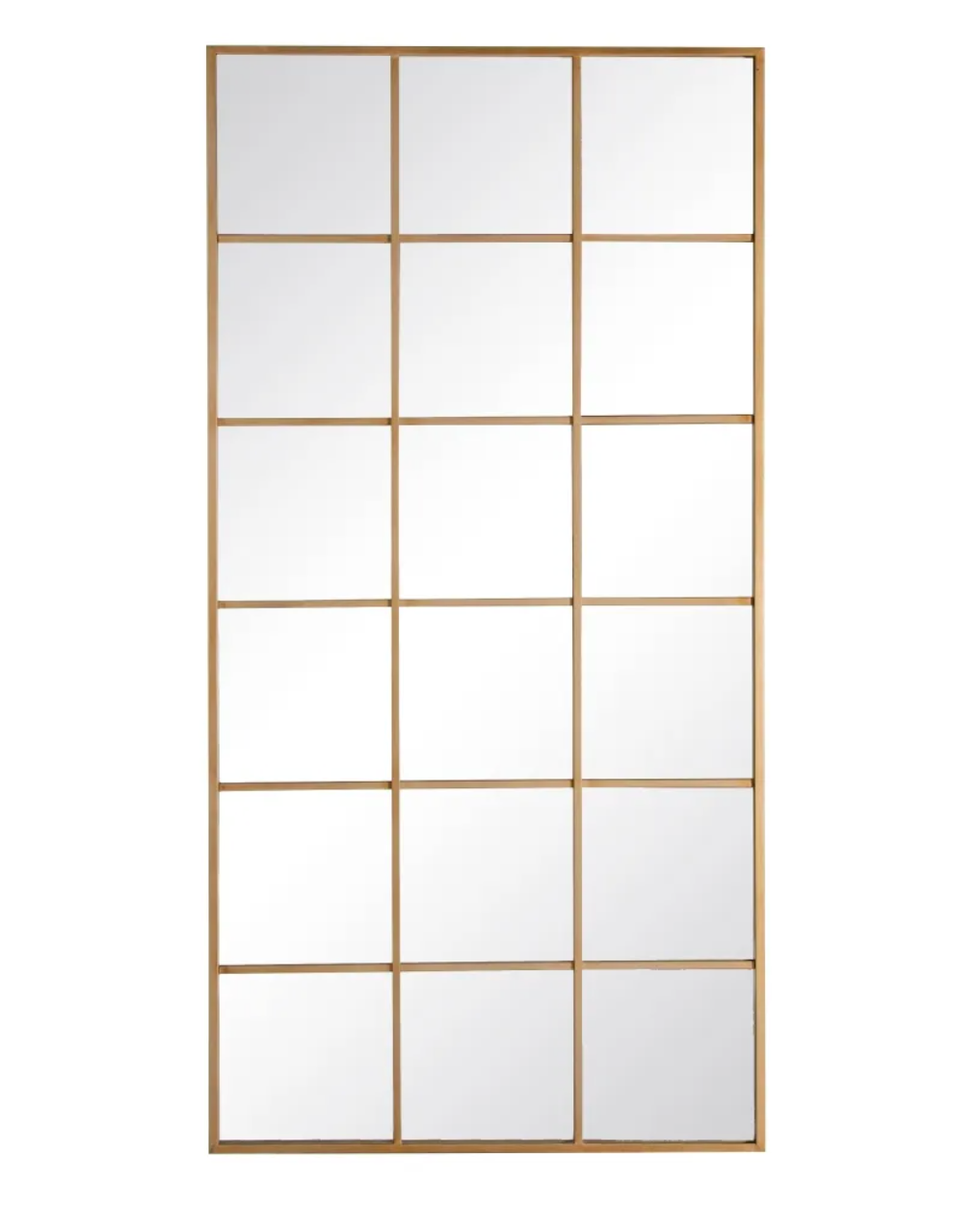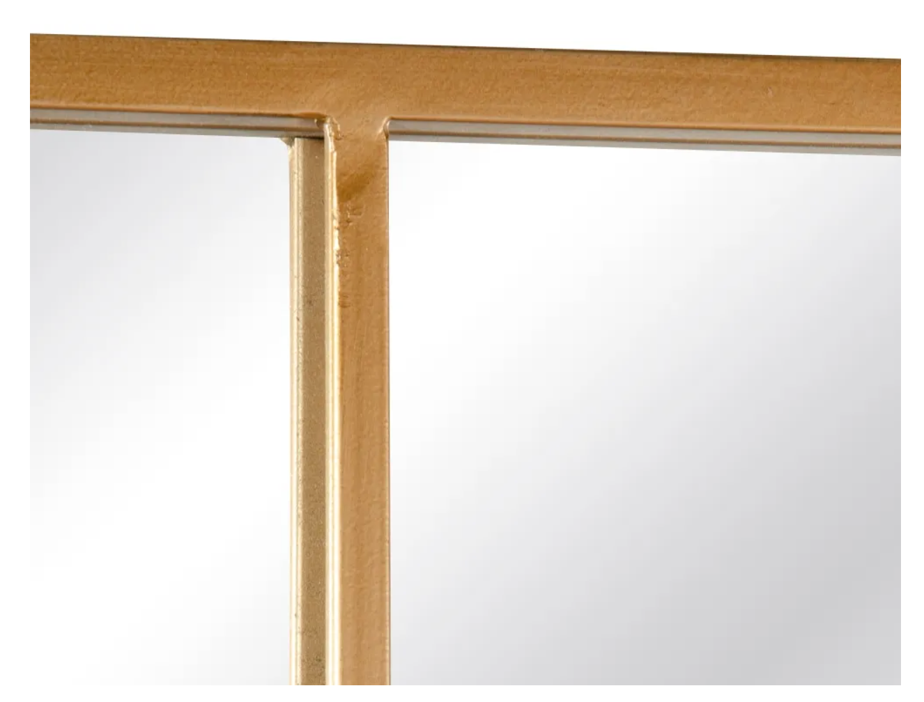 Espejo ventana de metal dorado. Incorpora anillas para su correcta sujeción (vertical).