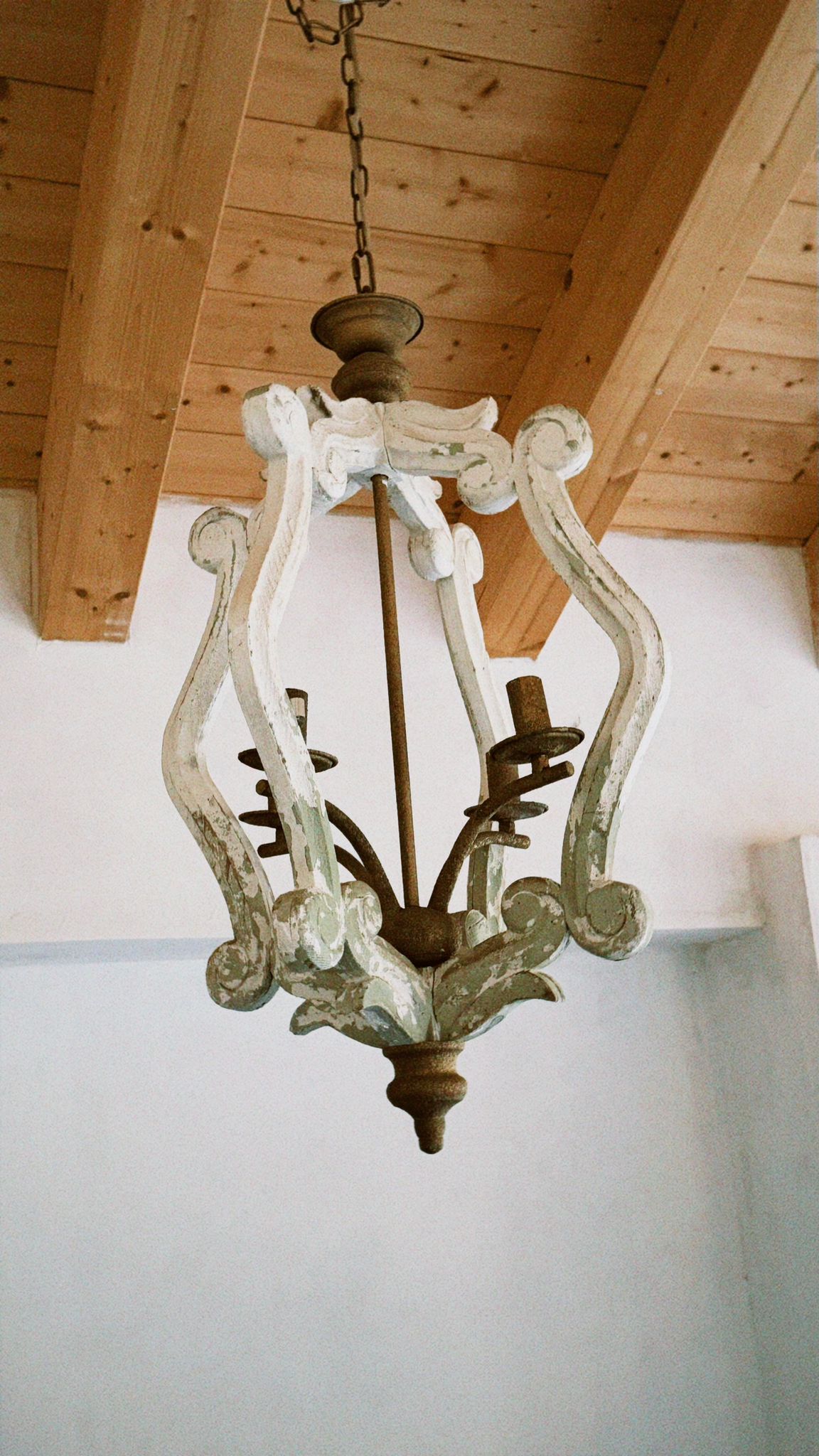 Lámpara techo madera abeto y metal 33x33x68cm.