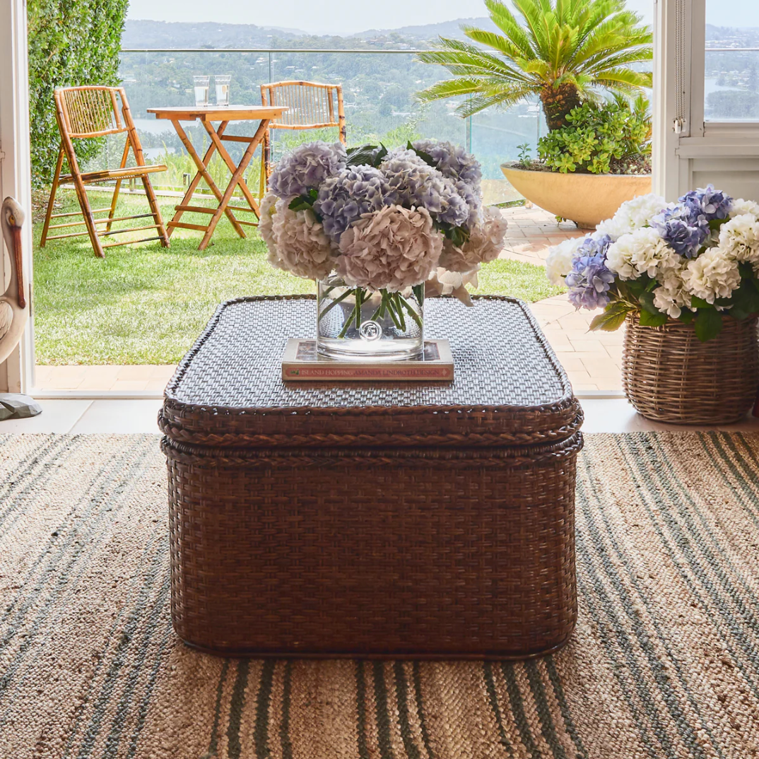 Añade un toque de calidez y encanto natural a tu salón con esta mesa de centro de ratán. Con un diseño trenzado a mano y una estructura ligera pero resistente, es perfecta para ambientes bohemios o contemporáneos. Su superficie amplia y su estilo orgánico la convierten en el complemento ideal para crear espacios acogedores