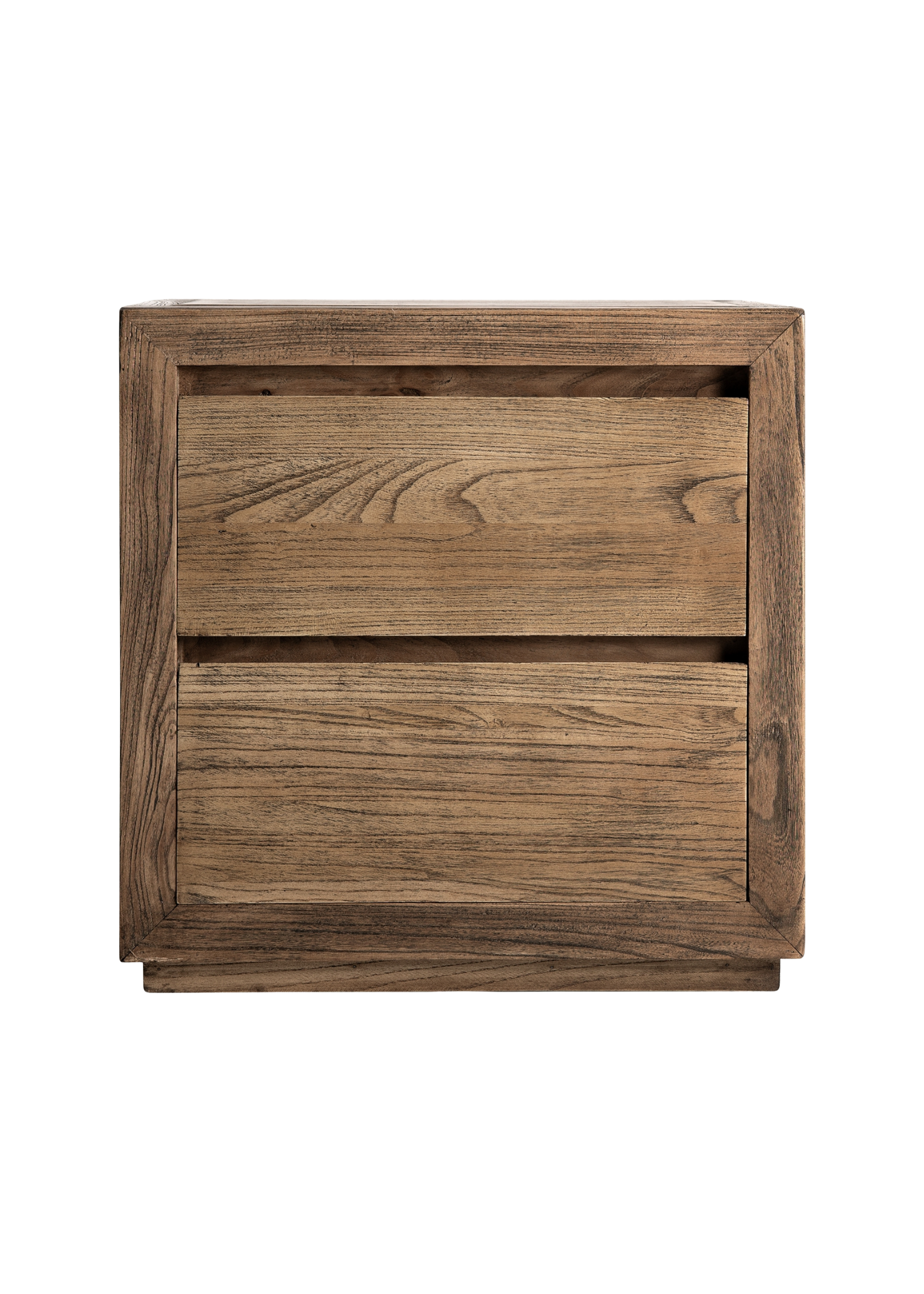 Mesita de Noche de madera de olmo en color marrón.