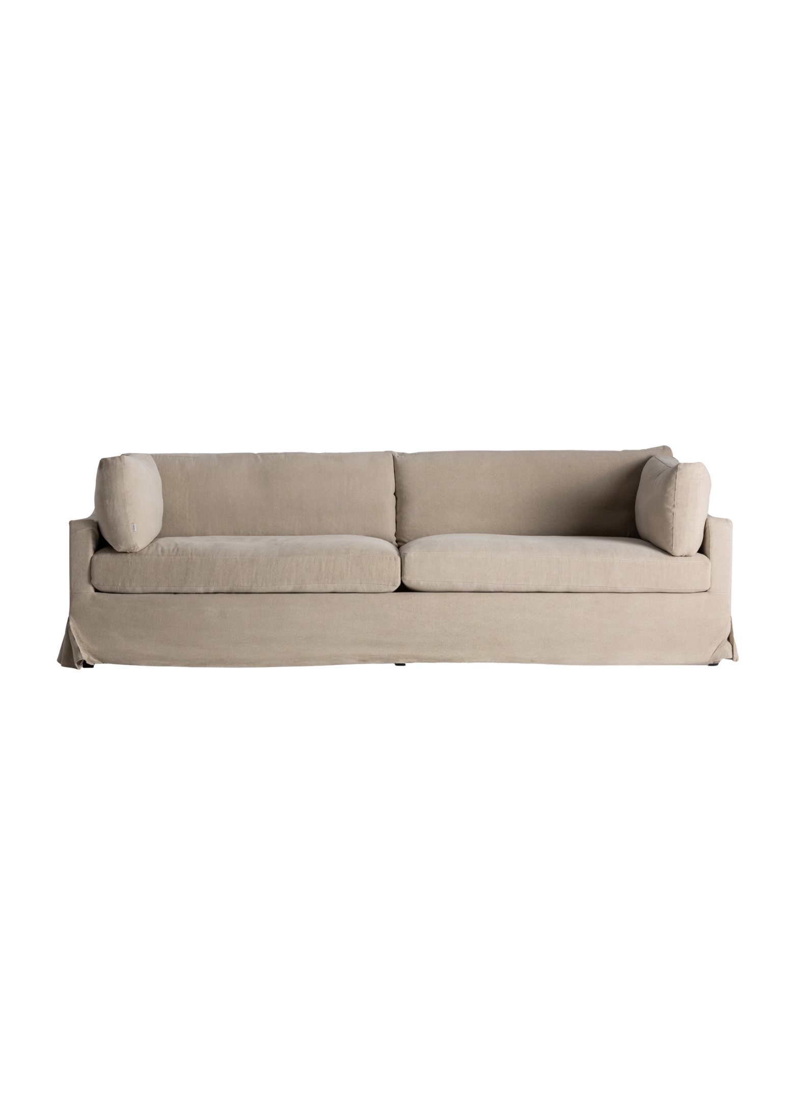 El Sofá tapizado en lino beige y estructura mullida.