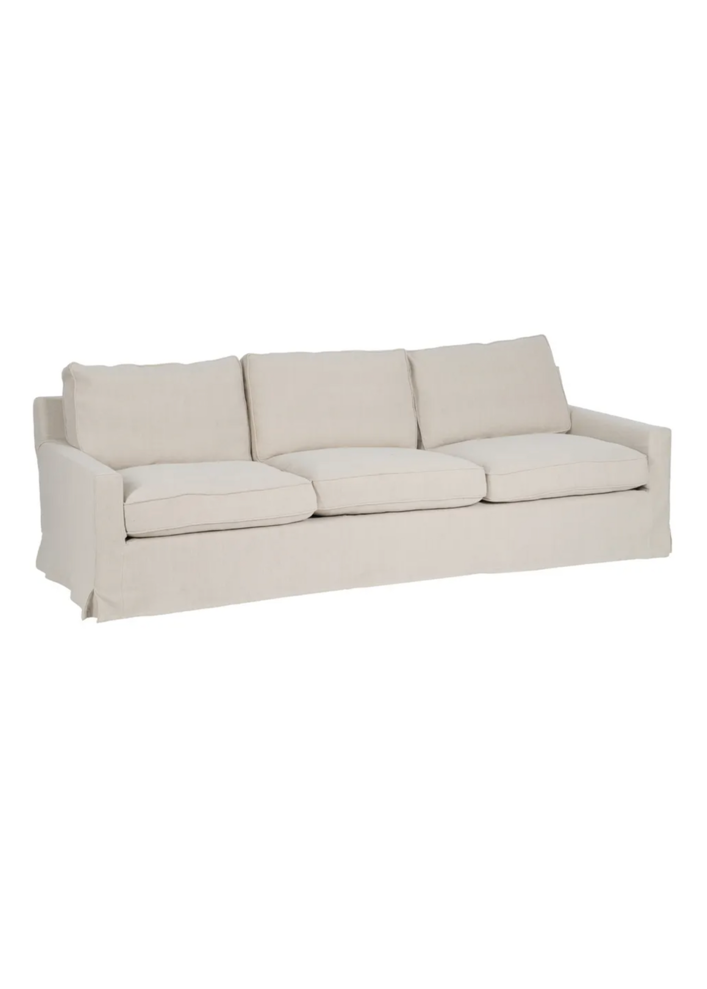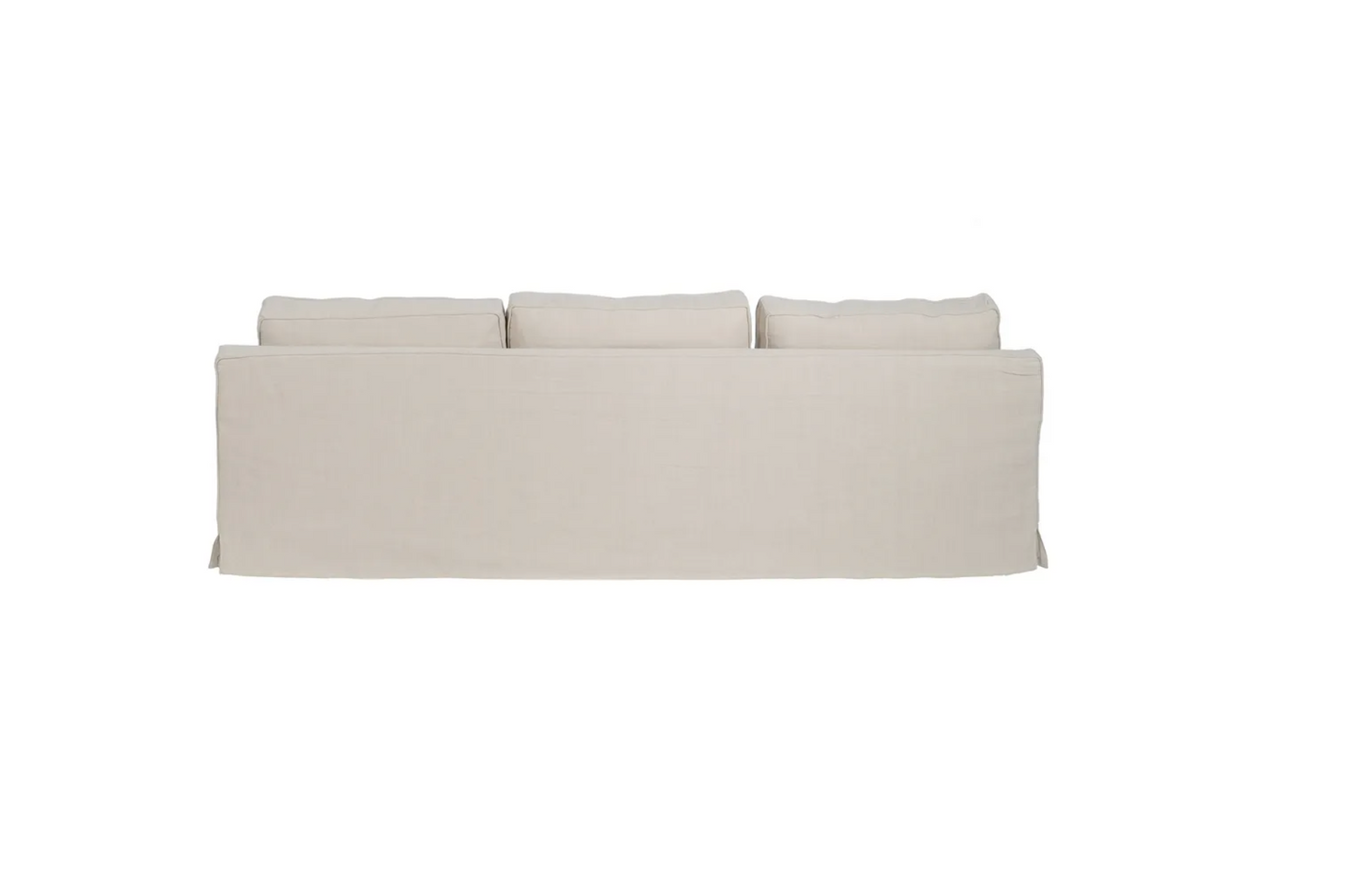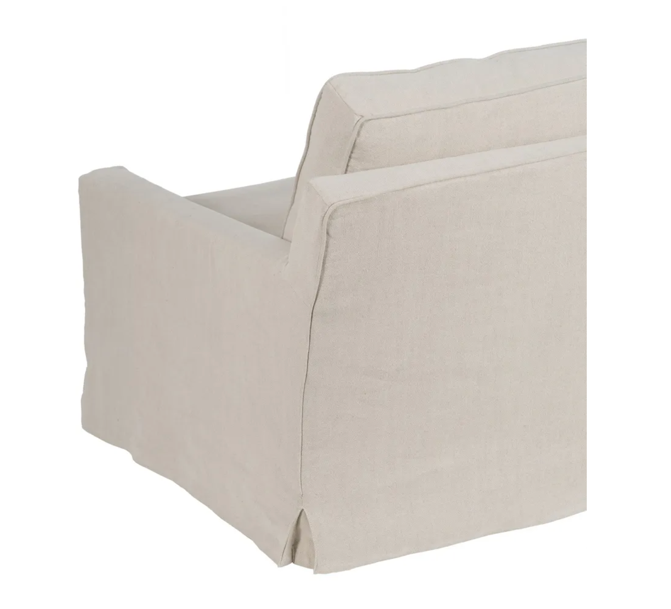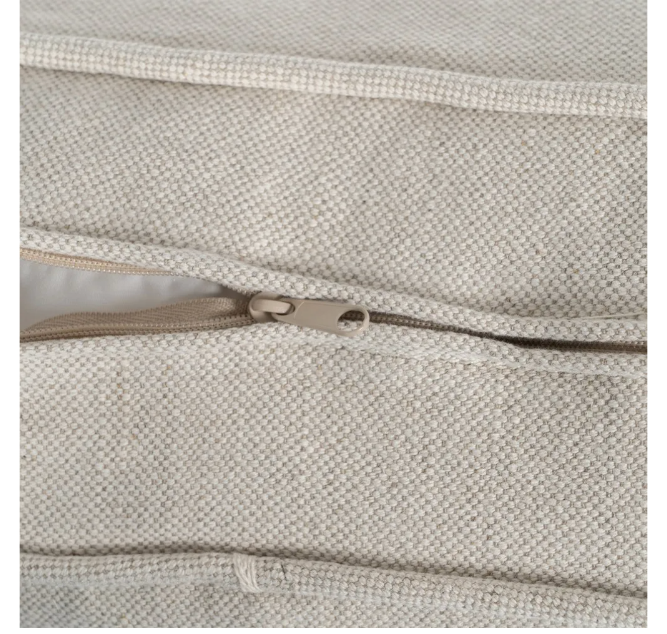 Sofa 4 plazas de madera de pino. El relleno es de foam y pluma y el cierre de los cojines tiene cremallera. Lavado en seco y no usar plancha.
